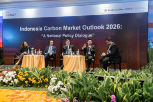 Key stakeholders from the Government of Indonesia, the private sector, and project developers from the carbon markets ecosystem gathered today at the Hotel Borobudur Jakarta for the Indonesia’s Carbon Market 2026: A National Policy Dialogue. The dialogue marks an important milestone in aligning a shared understanding of the implementation of Indonesia’s carbon economic value (NEK), as the country transitions from policy formulation towards market operationalisation. This event was convened by UK Partnering for Accelerated Climate Transitions (UK PACT), implemented by EcoSecurities and the Institute for Development of Economics and Finance (INDEF).
